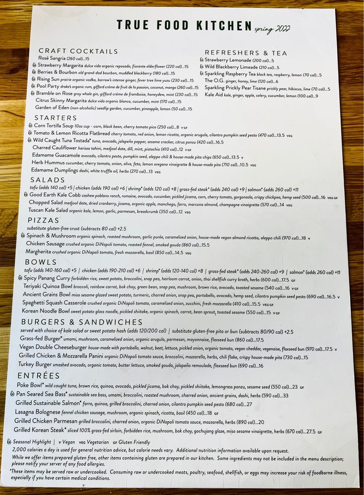 True Food Kitchen - W Colorado Blvd Menu